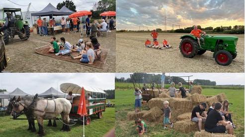 We starten om 13u30 met een aperitief of koffie, waarna om 14u de wandeling (±7 km, toegankelijk voor kinderwagens) en fietstocht (±30 km) van start gaan. Voor kinderen en minder mobiele deelnemers is er een huifkar voorzien. Onderweg houden we halt voor een drankje.