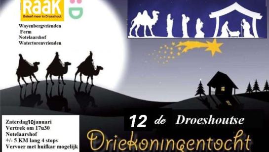 Onze drie Koningen gaan weer op stap op zoek naar het kind dat voor ons geboren is We komen samen tegen 17 u30 op het Notelaarshof en vetrekken allen tezamen in groep naar de verschillende stallen. De tocht is ongeveer 3 km en duurt een kleine 2 uurtjes. Daarna is er gelegenheidscafé in de stal van het Notelaarshof. Deelname gratis. Dranken en eten niet inbegrepen.