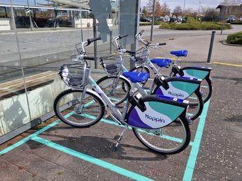 De deelfietsen worden strategisch geplaatst bij de belangrijkste Hoppinpunten in de regio. Dat zijn plaatsen waar verschillende vervoersmiddelen samenkomen die de reizigers makkelijk kunnen combineren. Zo sluiten ze perfect aan op trein- en/of busverbindingen.
