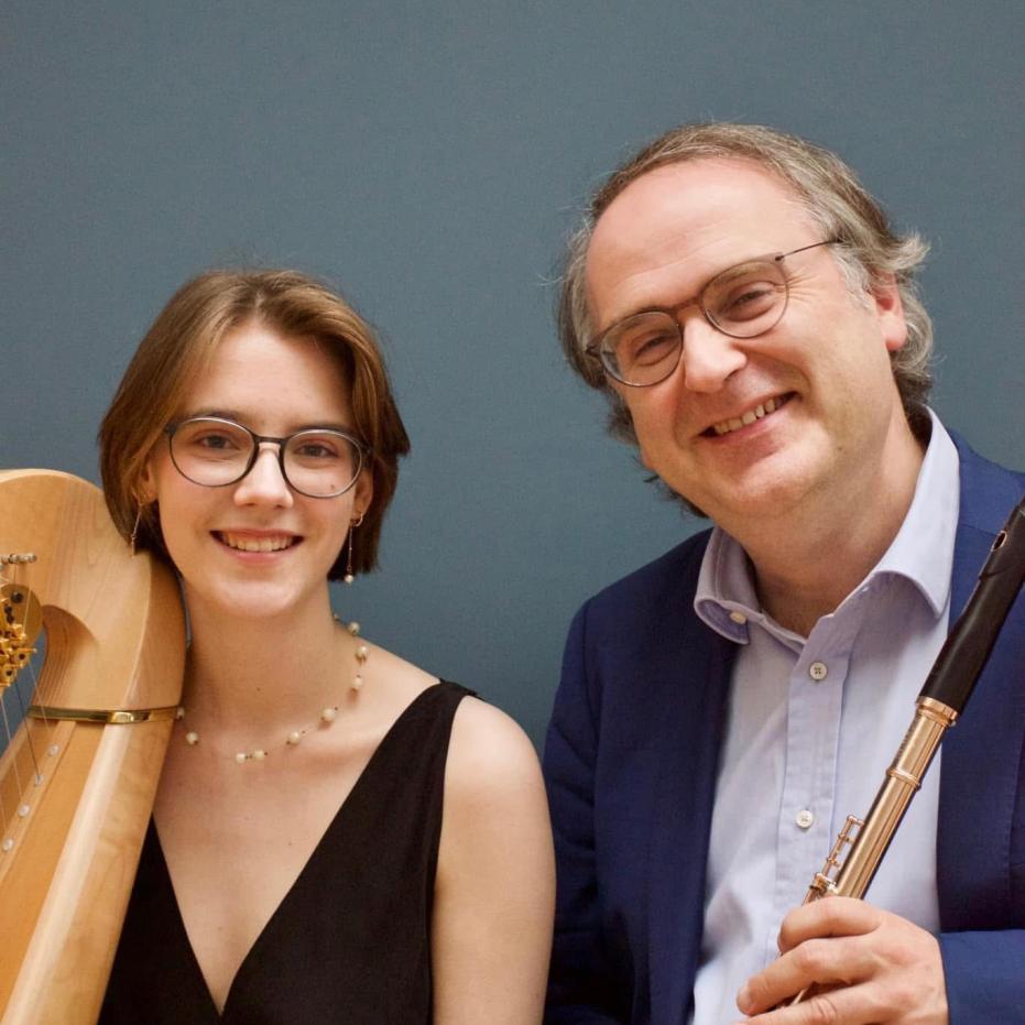 Peter Verhoyen (piccolo) en Ann-Sofie Verhoyen (harp) brengen een betoverend concert met een gevarieerd programma dat zowel klassiek als traditioneel werk bevat.