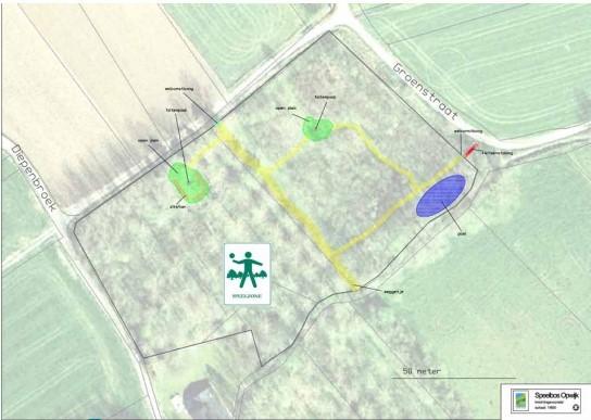 Het speelbos is gelegen tussen de Groenstraat en Diepenbroek.