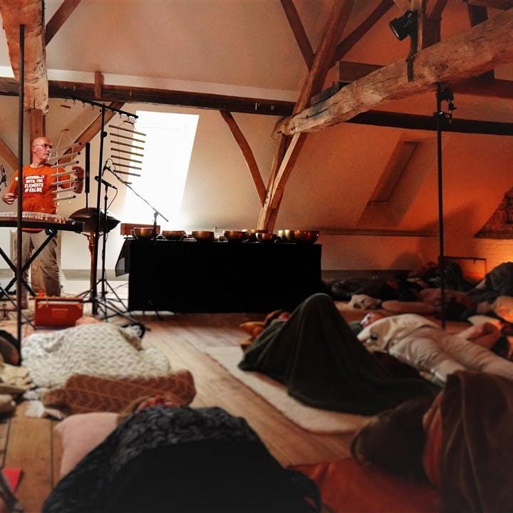 Een klank die opkomt, resoneert, vervaagt... en opnieuw ontstaat. In dit ligconcert nodigt Boventoon je uit om je te laten meenemen in een cyclische stroom van geluid – zonder begin, zonder einde.