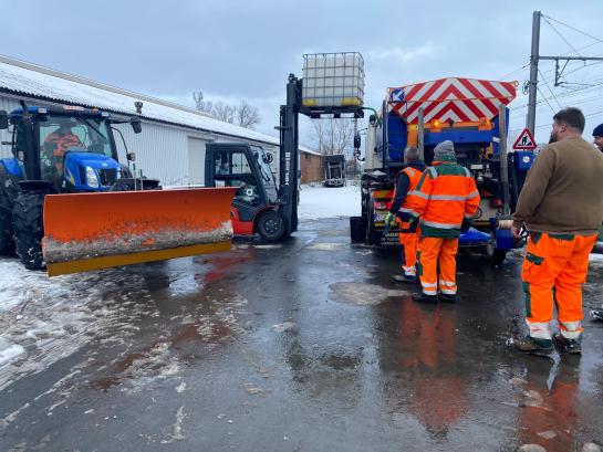 Deze ochtend, om half vijf, werden in onze loods de strooimachines gevuld met zout en pekel. Taken werden verdeeld, onze werklieden trotseerden de winterkou, trokken de baan op en bestreden sneeuw en ijzel — ook te voet.