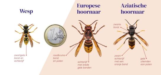 Wespen en Europese hoornaars zijn nuttige dieren. Laat ze enkel verwijderen als ze een rechtstreeks gevaar vormen. Hiervoor kan je beroep doen op een private verdelger (niet op de brandweer). De lijst met private verdelgers is te vinden op: www.wespennest.vlaanderen.