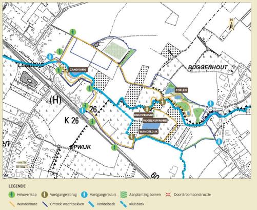 Met de herinrichting van het wachtbekken kreeg gebied een bijkomende bestemming: een ecologisch plekje voor natuur en recreatie. Wandelpaden werden aangelegd, een knuppelpad werd ingericht, een vogelkijkwand werd geïnstalleerd, toegangspoortjes werden geplaatst en voetgangersbruggen over beken en grachten werden aangelegd, akkerpercelen in het gebied werden omgevormd tot grasland of bos,...