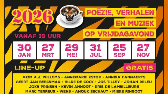 Tygerstrepen is een twee maandelijkse poëzie- en vertelavond die plaatsvindt in Opwijk. Vanaf 19 u. springt lokaal en minder lokaal talent toe om hun mooiste woorden te delen, soms ook op muziek. De inkom is altijd gratis!
